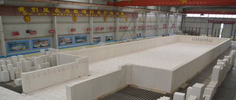 橫火焰窯爐( 浮法線)玻璃池窯在目前的建材玻璃生產(chǎn)中應(yīng)用廣泛,其包括:投料系統(tǒng)、熔制系統(tǒng)、熱源供給系統(tǒng)、廢氣余熱利用系統(tǒng)、排煙供氣系統(tǒng)等。首先是由排煙供氣部分提供預(yù)熱空氣,進(jìn)入蓄熱室,熱的空氣接著進(jìn)入玻璃熔制部分的熔化部,由熱能供給部分的小爐產(chǎn)生橫向的火焰提供熱量,使由供料池加入的配合料和碎玻璃在熔化部熔化并進(jìn)行玻璃液澄清、均化,通過冷卻部冷卻后進(jìn)入錫槽。電熔鋯剛玉AZS是此窯爐所需的不可替代的核心材料。